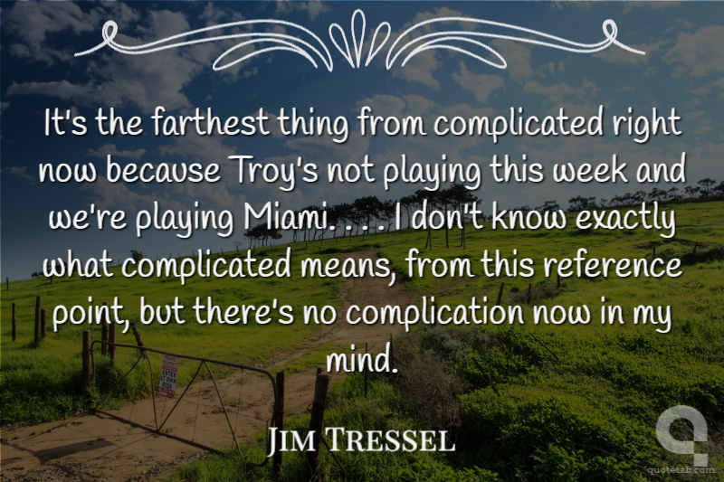 It's the farthest thing from complicated right now because Troy's not playing this week and we're playing Miami. . . . I don't know exactly what complicated means, from this reference point, but there's no complication now in my mind.
