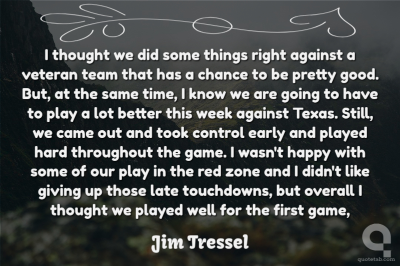I thought we did some things right against a veteran team that has a chance to be pretty good. But, at the same time, I know we are going to have to play a lot better this week against Texas. Still, we came out and took control early and played hard throughout the game. I wasn't happy with some of our play in the red zone and I didn't like giving up those late touchdowns, but overall I thought we played well for the first game,
