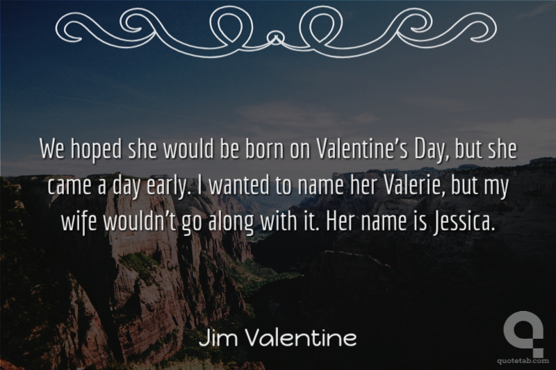We hoped she would be born on Valentine's Day, but she came a day early. I wanted to name her Valerie, but my wife wouldn't go along with it. Her name is Jessica.