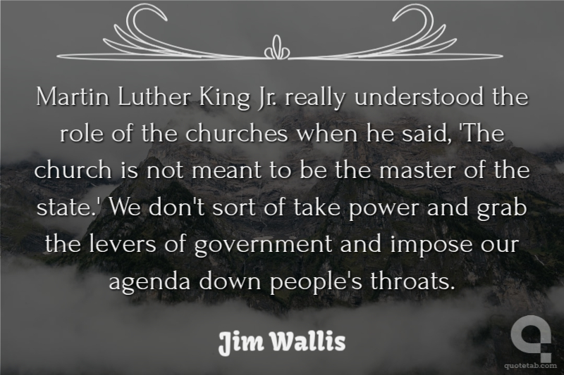 Martin Luther King Jr. really understood the role of the churches when he said, 'The church is not meant to be the master of the state.' We don't sort of take power and grab the levers of government and impose our agenda down people's throats.