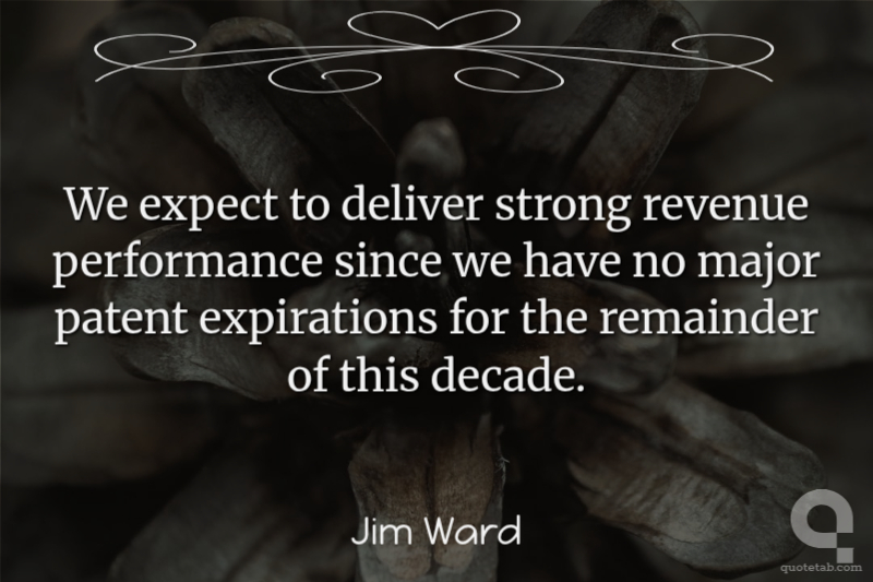 We expect to deliver strong revenue performance since we have no major patent expirations for the remainder of this decade.