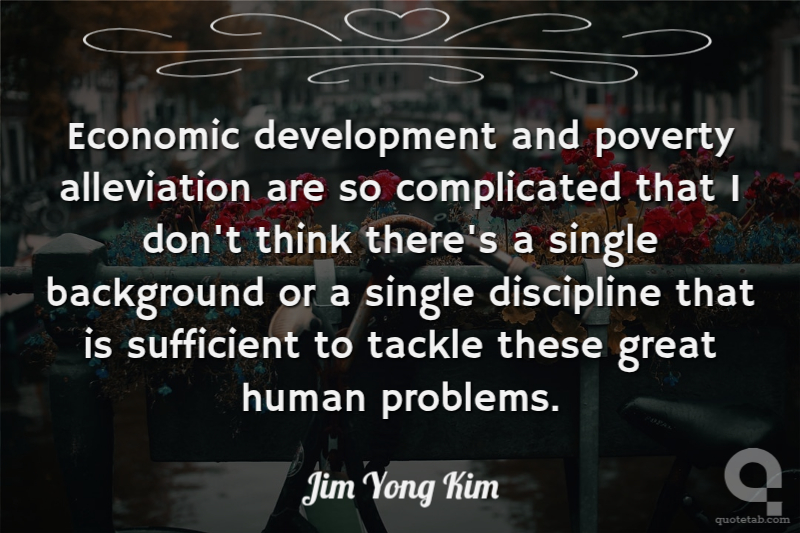 Economic development and poverty alleviation are so complicated that I don't think there's a single background or a single discipline that is sufficient to tackle these great human problems.