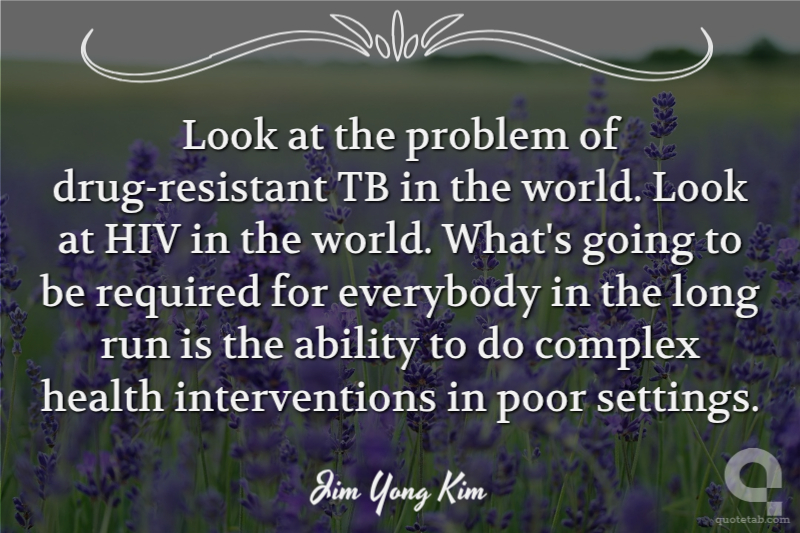 Look at the problem of drug-resistant TB in the world. Look at HIV in the world. What's going to be required for everybody in the long run is the ability to do complex health interventions in poor settings.
