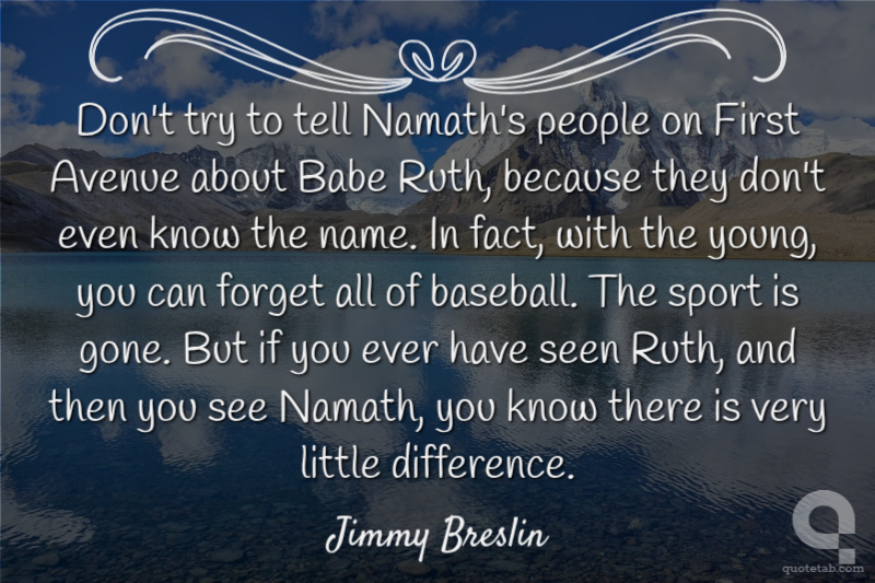 Don't try to tell Namath's people on First Avenue about Babe Ruth, because they don't even know the name. In fact, with the young, you can forget all of baseball. The sport is gone. But if you ever have seen Ruth, and then you see Namath, you know there is very little difference.