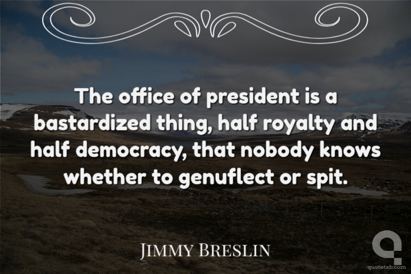 The office of president is a bastardized thing, half royalty and half democracy, that nobody knows whether to genuflect or spit.