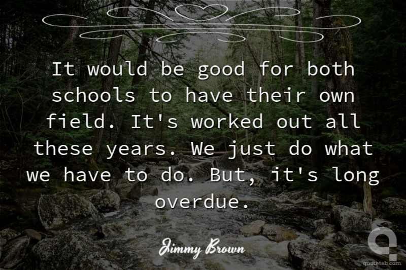 It would be good for both schools to have their own field. It's worked out all these years. We just do what we have to do. But, it's long overdue.
