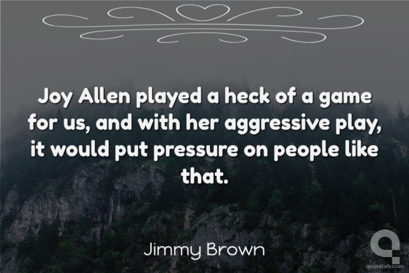 Joy Allen played a heck of a game for us, and with her aggressive play, it would put pressure on people like that.