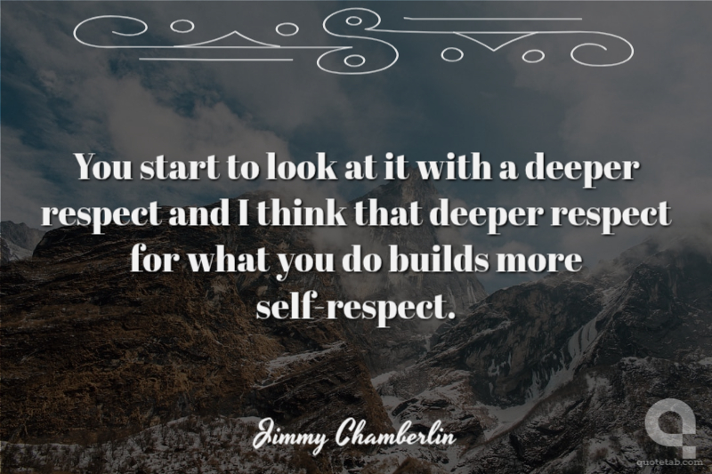 You start to look at it with a deeper respect and I think that deeper respect for what you do builds more self-respect.