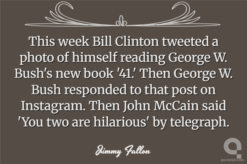 This week Bill Clinton tweeted a photo of himself reading George W. Bush's new book '41.' Then George W. Bush responded to that post on Instagram. Then John McCain said 'You two are hilarious' by telegraph.