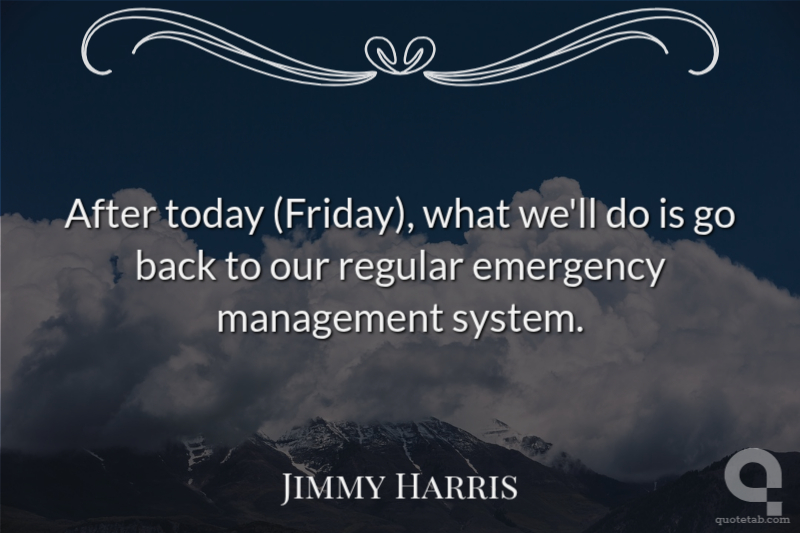After today (Friday), what we'll do is go back to our regular emergency management system.