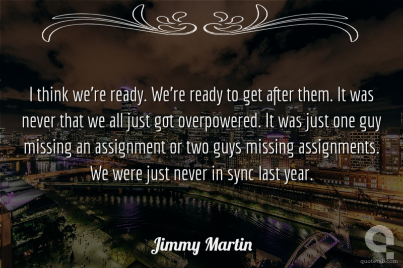 I think we're ready. We're ready to get after them. It was never that we all just got overpowered. It was just one guy missing an assignment or two guys missing assignments. We were just never in sync last year.
