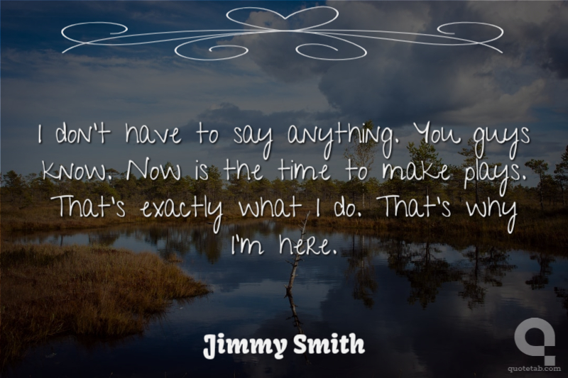I don't have to say anything. You guys know. Now is the time to make plays. That's exactly what I do. That's why I'm here.