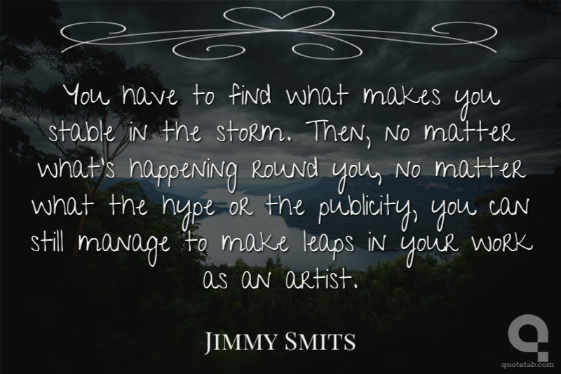 You have to find what makes you stable in the storm. Then, no matter what's happening round you, no matter what the hype or the publicity, you can still manage to make leaps in your work as an artist.