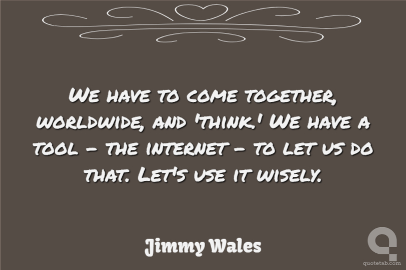 We have to come together, worldwide, and 'think.' We have a tool - the internet - to let us do that. Let's use it wisely.