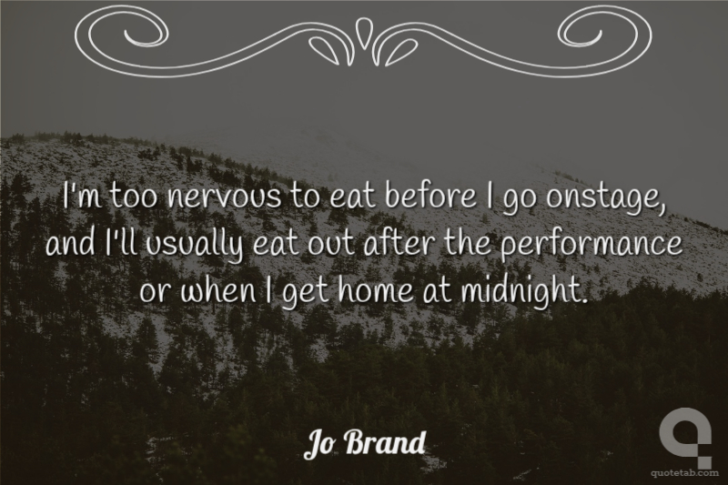 I'm too nervous to eat before I go onstage, and I'll usually eat out after the performance or when I get home at midnight.