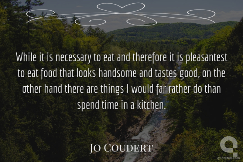 While it is necessary to eat and therefore it is pleasantest to eat food that looks handsome and tastes good, on the other hand there are things I would far rather do than spend time in a kitchen.