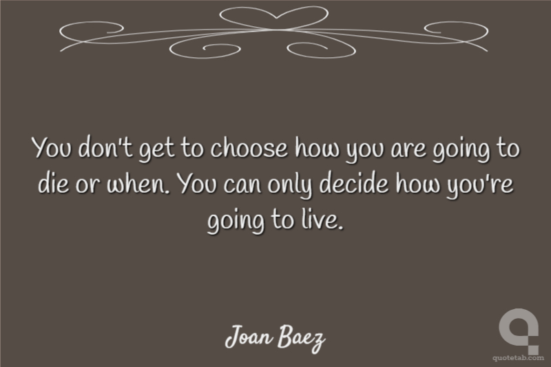 You don't get to choose how you are going to die or when. You can only decide how you're going to live.