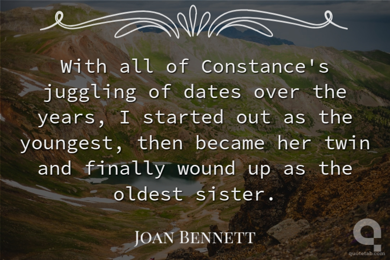 With all of Constance's juggling of dates over the years, I started out as the youngest, then became her twin and finally wound up as the oldest sister.