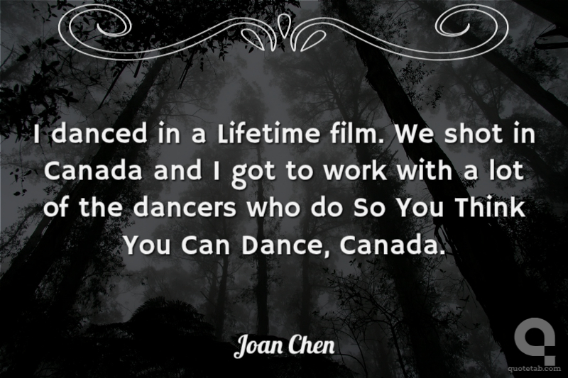 I danced in a Lifetime film. We shot in Canada and I got to work with a lot of the dancers who do So You Think You Can Dance, Canada.