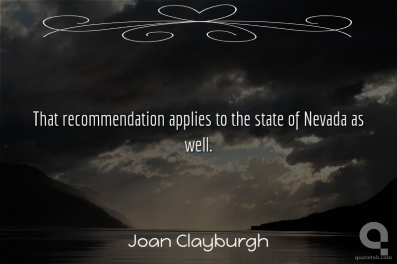 That recommendation applies to the state of Nevada as well.