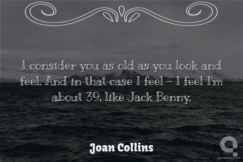 I consider you as old as you look and feel. And in that case I feel - I feel I'm about 39, like Jack Benny.