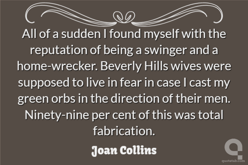 All of a sudden I found myself with the reputation of being a swinger and a home-wrecker. Beverly Hills wives were supposed to live in fear in case I cast my green orbs in the direction of their men. Ninety-nine per cent of this was total fabrication.