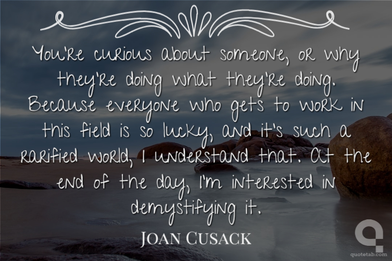 You're curious about someone, or why they're doing what they're doing. Because everyone who gets to work in this field is so lucky, and it's such a rarified world, I understand that. At the end of the day, I'm interested in demystifying it.