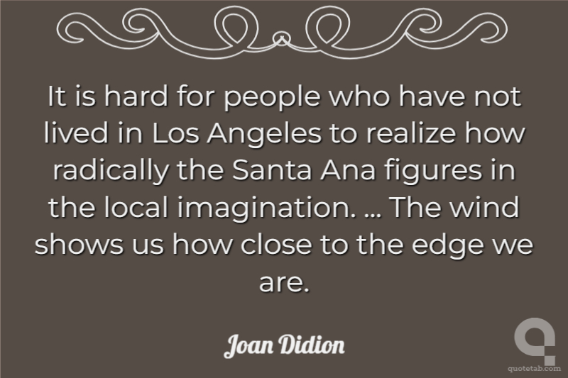 It is hard for people who have not lived in Los Angeles to realize how radically the Santa Ana figures in the local imagination. ... The wind shows us how close to the edge we are.