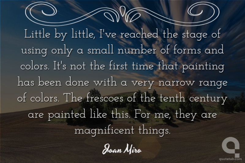 Little by little, I've reached the stage of using only a small number of forms and colors. It's not the first time that painting has been done with a very narrow range of colors. The frescoes of the tenth century are painted like this. For me, they are magnificent things.