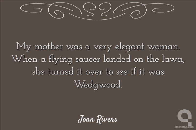 My mother was a very elegant woman. When a flying saucer landed on the lawn, she turned it over to see if it was Wedgwood.