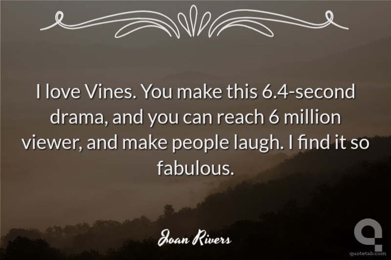I love Vines. You make this 6.4-second drama, and you can reach 6 million viewer, and make people laugh. I find it so fabulous.