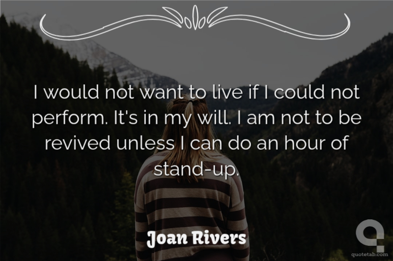 I would not want to live if I could not perform. It's in my will. I am not to be revived unless I can do an hour of stand-up.