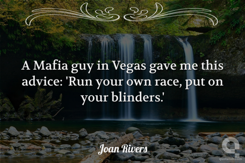 A Mafia guy in Vegas gave me this advice: 'Run your own race, put on your blinders.'