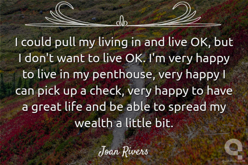 I could pull my living in and live OK, but I don't want to live OK. I'm very happy to live in my penthouse, very happy I can pick up a check, very happy to have a great life and be able to spread my wealth a little bit.