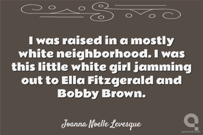 I was raised in a mostly white neighborhood. I was this little white girl jamming out to Ella Fitzgerald and Bobby Brown.
