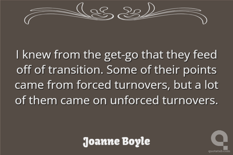 I knew from the get-go that they feed off of transition. Some of their points came from forced turnovers, but a lot of them came on unforced turnovers.