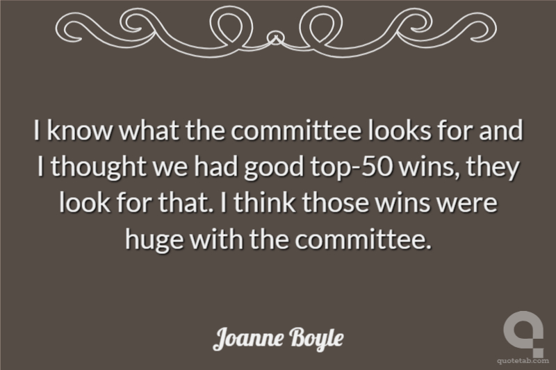 I know what the committee looks for and I thought we had good top-50 wins, they look for that. I think those wins were huge with the committee.