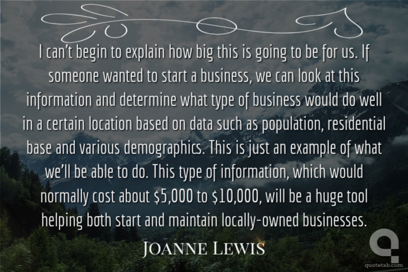 I can't begin to explain how big this is going to be for us. If someone wanted to start a business, we can look at this information and determine what type of business would do well in a certain location based on data such as population, residential base and various demographics. This is just an example of what we'll be able to do. This type of information, which would normally cost about $5,000 to $10,000, will be a huge tool helping both start and maintain locally-owned businesses.
