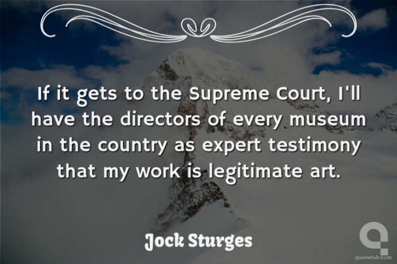 If it gets to the Supreme Court, I'll have the directors of every museum in the country as expert testimony that my work is legitimate art.