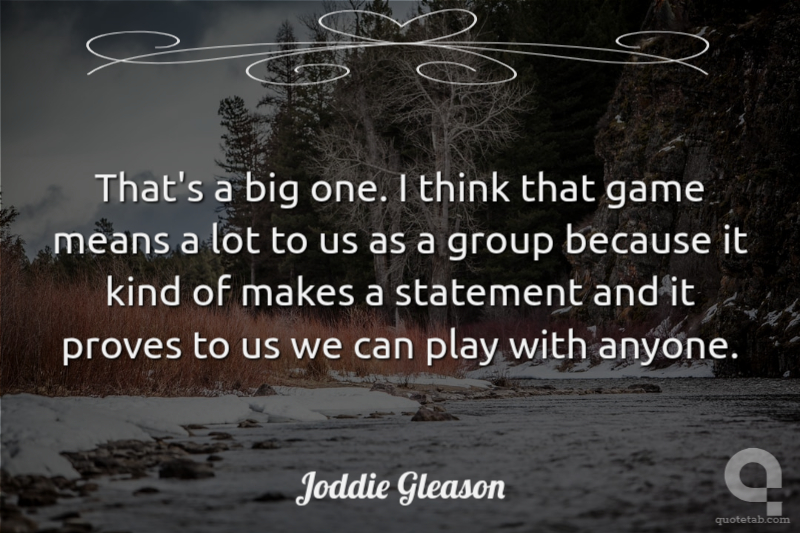 That's a big one. I think that game means a lot to us as a group because it kind of makes a statement and it proves to us we can play with anyone.