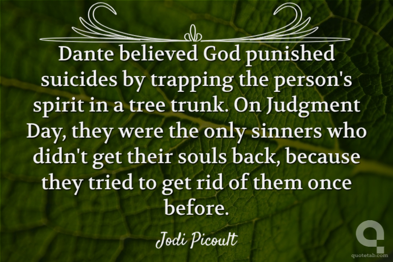 Dante believed God punished suicides by trapping the person's spirit in a tree trunk. On Judgment Day, they were the only sinners who didn't get their souls back, because they tried to get rid of them once before.