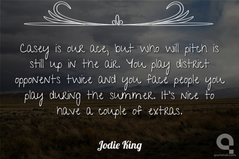 Casey is our ace, but who will pitch is still up in the air. You play district opponents twice and you face people you play during the summer. It's nice to have a couple of extras.