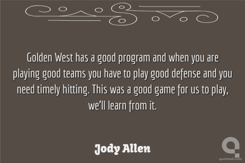 Golden West has a good program and when you are playing good teams you have to play good defense and you need timely hitting. This was a good game for us to play, we'll learn from it.