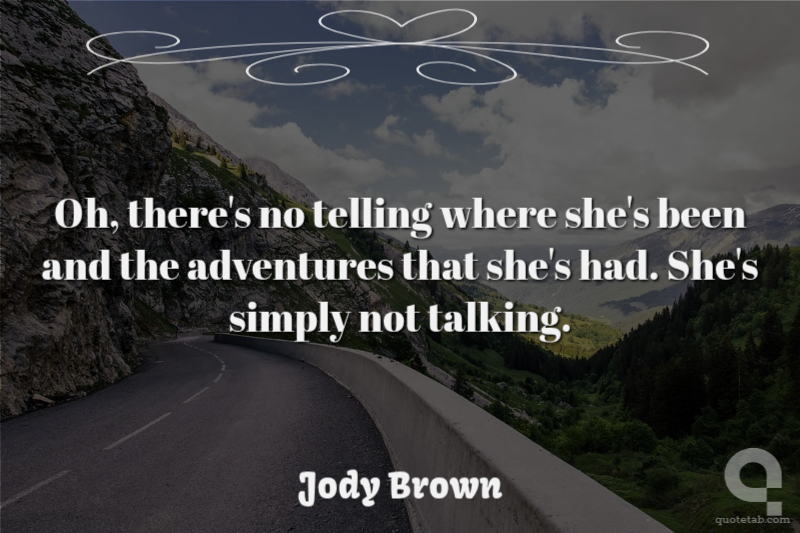 Oh, there's no telling where she's been and the adventures that she's had. She's simply not talking.