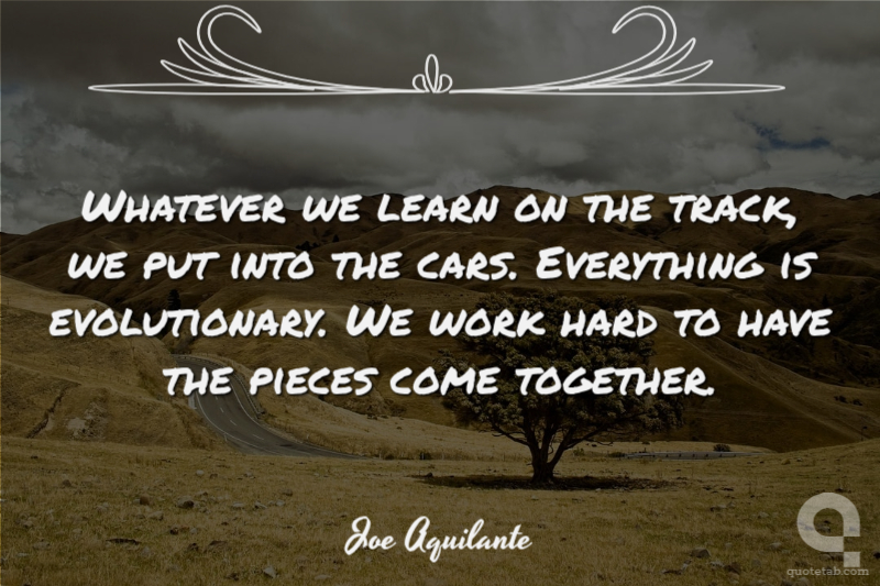 Whatever we learn on the track, we put into the cars. Everything is evolutionary. We work hard to have the pieces come together.