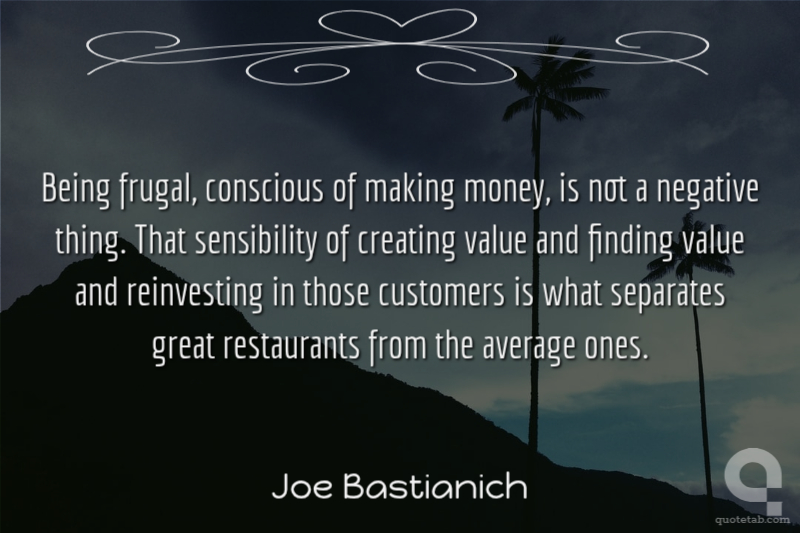 Being frugal, conscious of making money, is not a negative thing. That sensibility of creating value and finding value and reinvesting in those customers is what separates great restaurants from the average ones.