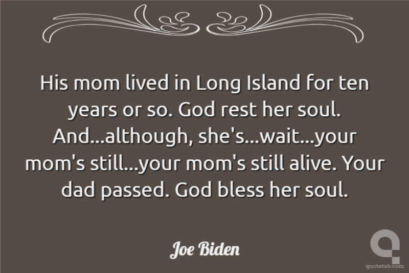 His mom lived in Long Island for ten years or so. God rest her soul. And...although, she's...wait...your mom's still...your mom's still alive. Your dad passed. God bless her soul.