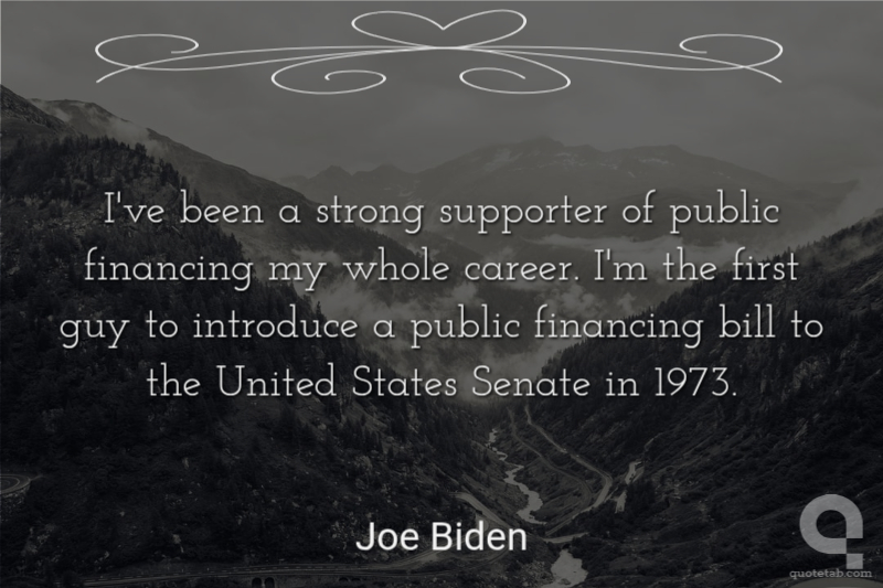 I've been a strong supporter of public financing my whole career. I'm the first guy to introduce a public financing bill to the United States Senate in 1973.