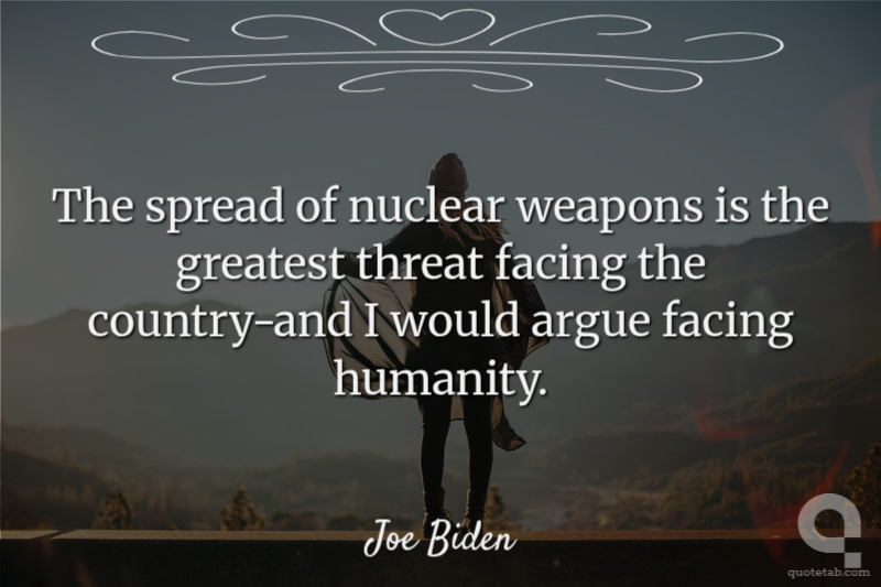 The spread of nuclear weapons is the greatest threat facing the country-and I would argue facing humanity.