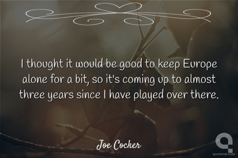 I thought it would be good to keep Europe alone for a bit, so it's coming up to almost three years since I have played over there.